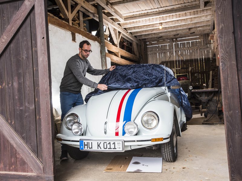 Mit Ablauf des Saisonkennzeichens endet die Straßenzulassung – das Auto darf nur auf privatem Grund stehen. Optimal ist eine trockene Garage oder ein überdachter Stellplatz. Eine atmungsaktive Abdeckung schützt vor Staub, Schmutz und neugierigen Blicken. Wichtig: Handbremse lösen! Sonst kann sie festrosten. Besser ist es, den ersten Gang einzulegen und Unterlegkeile zu verwenden. Bei Automatikfahrzeugen den Wählhebel auf „P“ stellen und ebenfalls Unterlegkeile nutzen. Wer nur im Freien parken kann, sollte Windschutz wählen und das Fahrzeug gelegentlich kontrollieren.